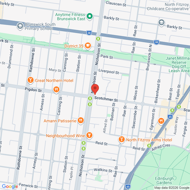 We are conveniently located on the corner of Nicholson and Scotchmer Streets in Fitzroy North with ample on street parking and on the Number 96 tram route.